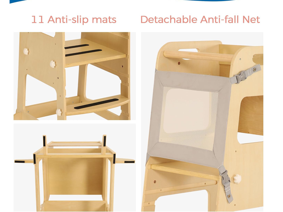 ตาข่ายเสริมความปลอดภัยในห้องครัวแบบปรับได้รุ่น Montessori หอคอยการเรียนรู้แบบปรับได้