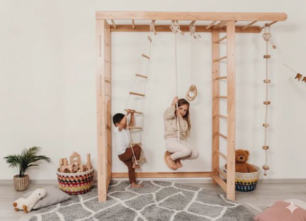 ชุดเครื่องเล่นปีนป่ายแบบสวีเดนที่ได้รับแรงบันดาลใจจากมอนเตสซอรี่สมัยใหม่ ทำจากพลาสติก ปรับแต่งได้ เป็นมิตรกับสิ่งแวดล้อม พับเก็บได้ ผลิตด้วยมือ เฟอร์นิเจอร์สำหรับรับประทานอาหารกลางแจ้ง