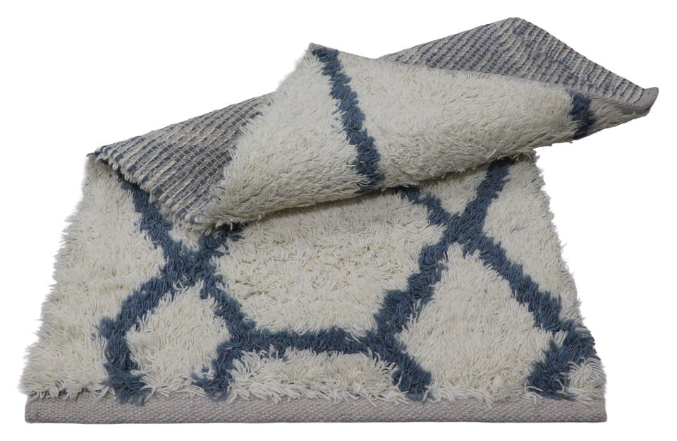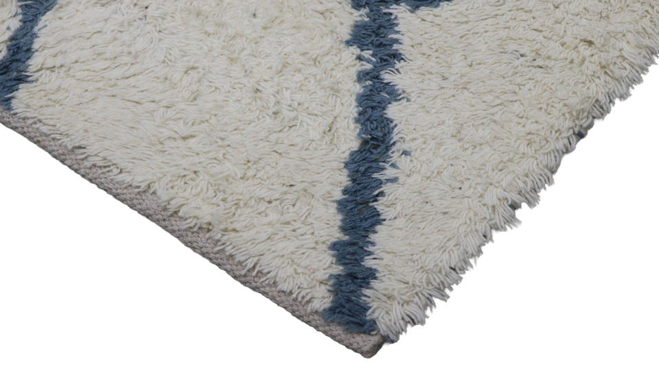 พรมขนสัตว์แบบขนปุยด้วยมือพรมปูพื้นสูงดีไซน์เรขาคณิตงาช้างนกเป็ดน้ำเป็นมิตรกับสิ่งแวดล้อมใส่กลับด้านได้เป็นมิตรกับสัตว์เลี้ยงสมัยใหม่