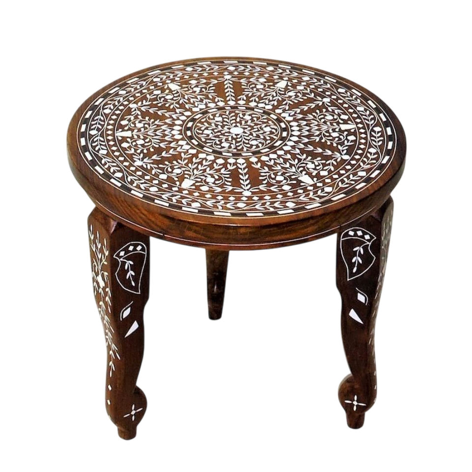 Modern Moroccan Style Hand Carved Solid Sheesham Wood Eco-Friendly Side Table Intricate Floral Motif Accent Coffee Table