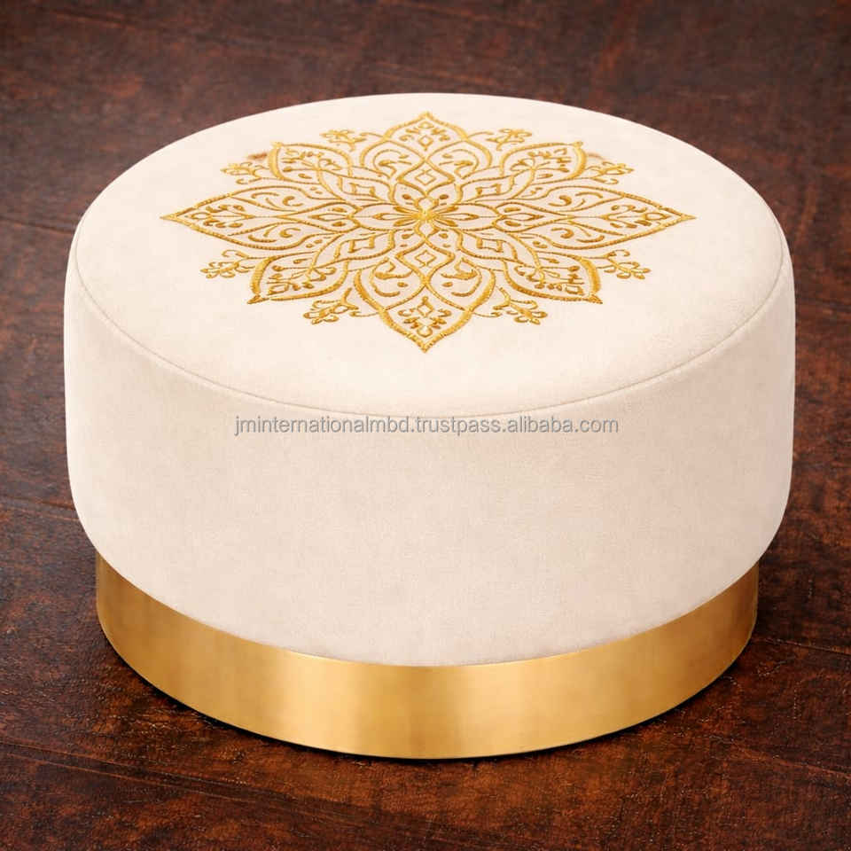 เก้าอี้พูฟกำมะหยี่ลายปักสไตล์โมร็อกโกสมัยใหม่ พร้อมฐานโลหะสีทอง สำหรับใช้ในห้องรับประทานอาหาร ห้องนอน และอพาร์ตเมนต์