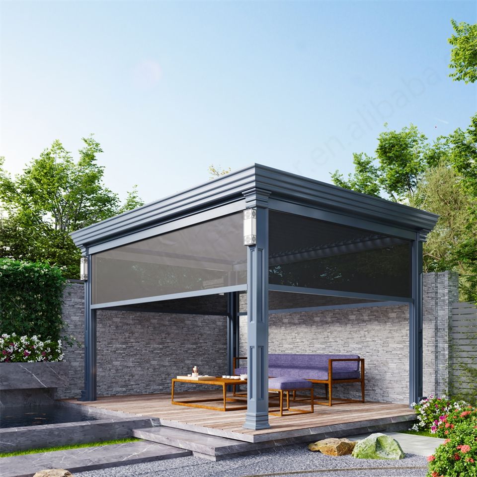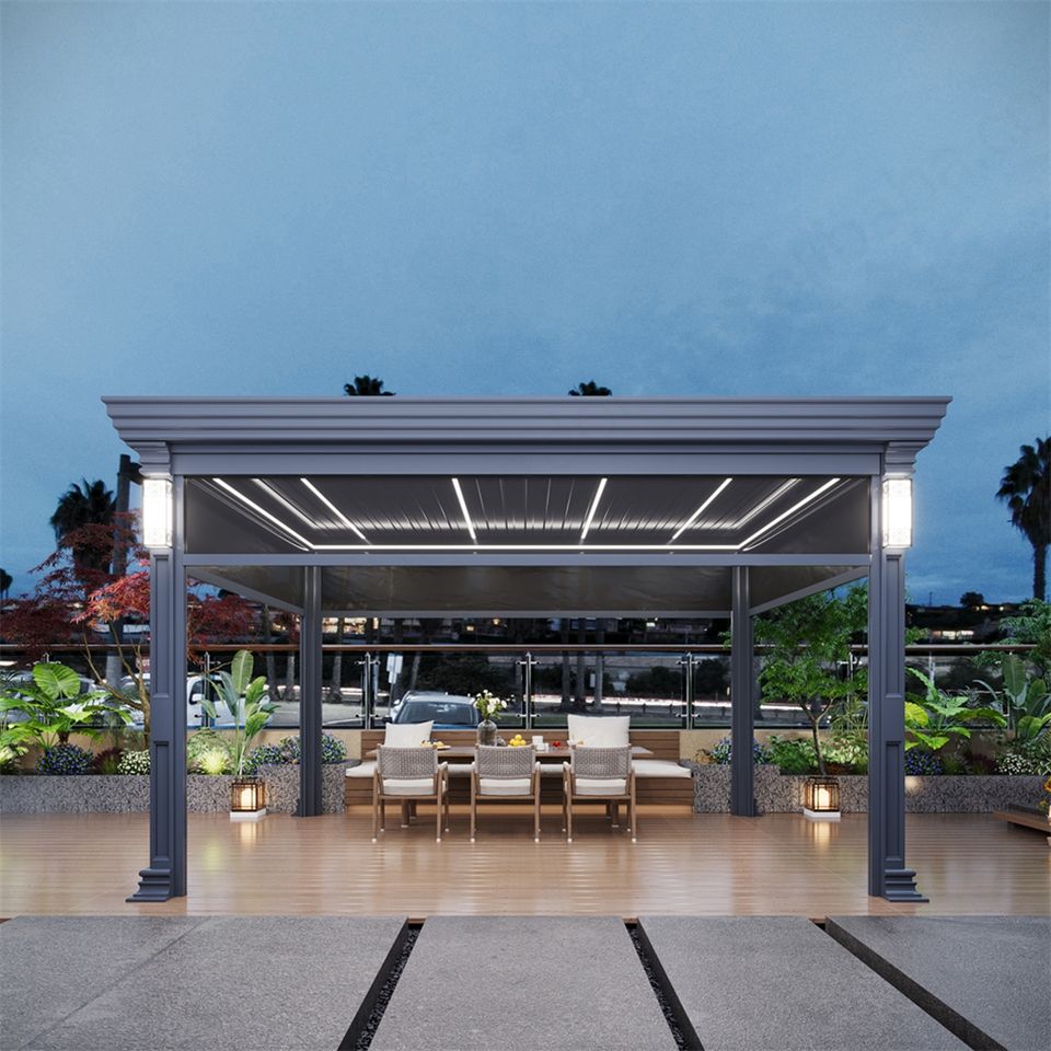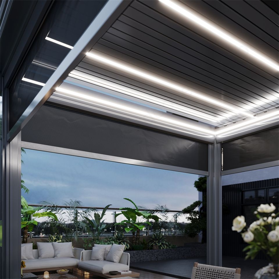ซุ้มอลูมิเนียมไฟฟ้าพร้อมที่บังแดดกลางแจ้งสำหรับระเบียง