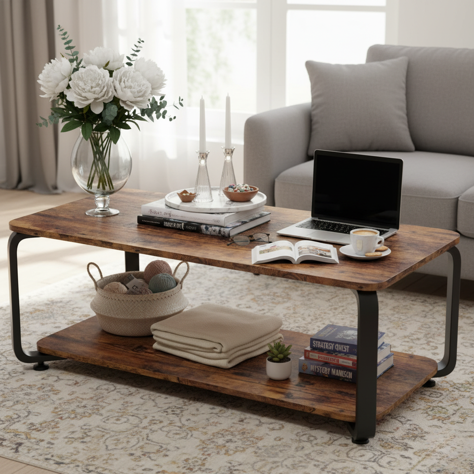 โต๊ะกาแฟอุตสาหกรรมสมัยใหม่ โต๊ะไม้ทรงสี่เหลี่ยม ทนทาน ทำความสะอาดง่าย โต๊ะกาแฟสำหรับห้องนั่งเล่น เฟอร์นิเจอร์