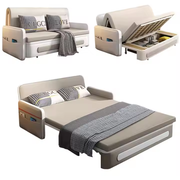 โซฟาเบดอเนกประสงค์แบบดึง-ผลัก รุ่นโมเดิร์น พร้อมที่เก็บของพับได้ เหมาะสำหรับห้องนอนเดี่ยว/คู่ ห้องน้ำ ห้องนั่งเล่น โฮมออฟฟิศ