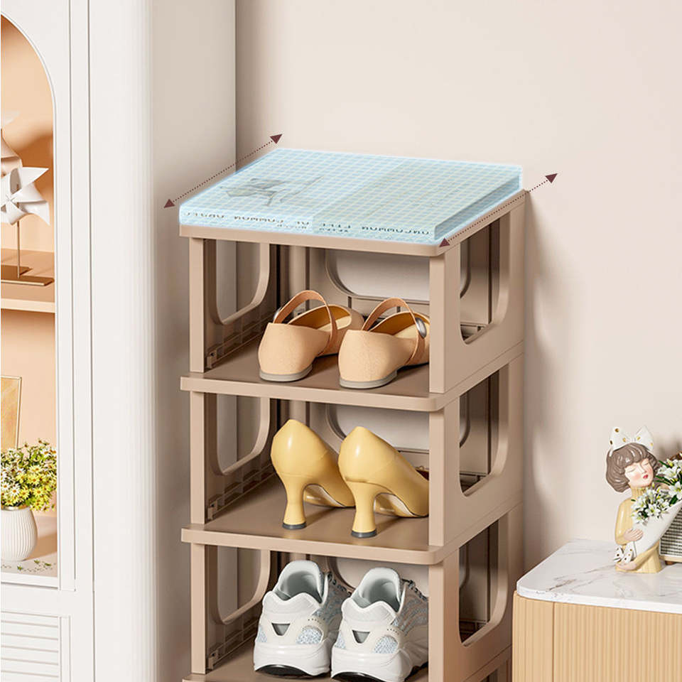 ชั้นวางรองเท้าพลาสติก PP พับได้หลายชั้นทันสมัยตู้เก็บของวางซ้อนกันได้สไตล์การแสดงสำหรับบ้านห้องครัวห้องน้ำห้องนั่งเล่น