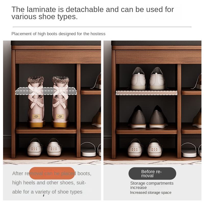 ชั้นวางรองเท้าในครัวเรือนหลายชั้นทันสมัยพร้อมประตูที่ถอดออกได้และเก้าอี้นั่งแบบบูรณาการอุจจาระสวมใส่ได้ตู้เปลี่ยนรองเท้า