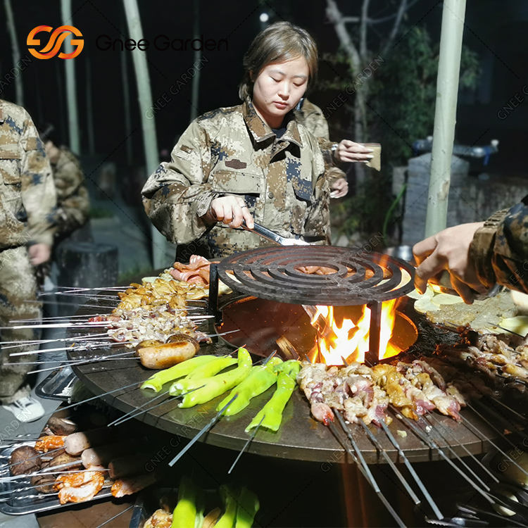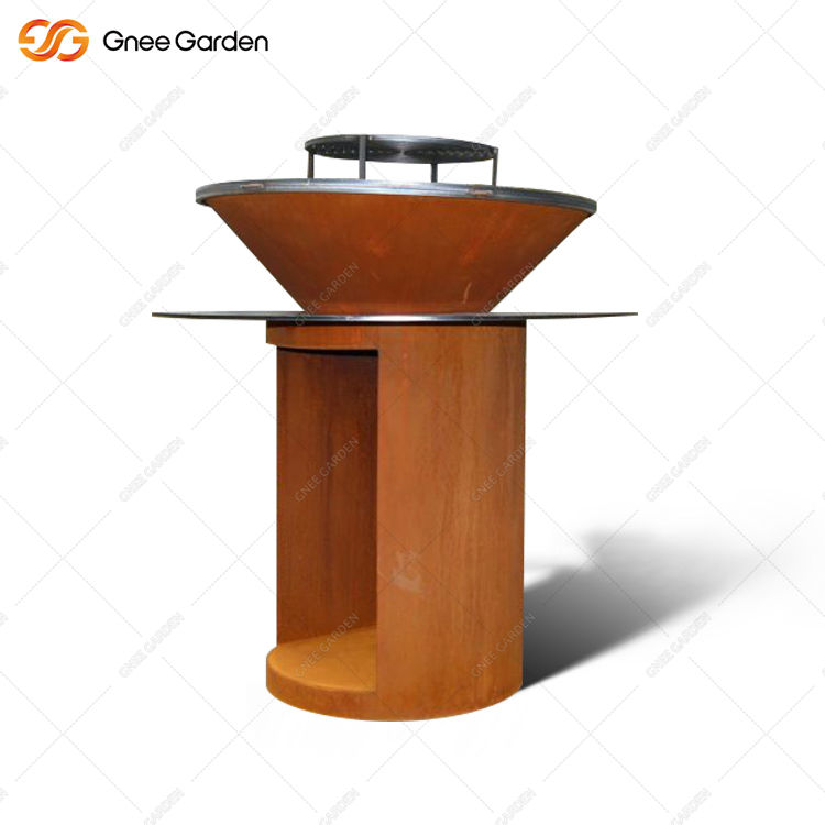 เตาย่างบาร์บีคิวเหล็กคอร์เทนอเนกประสงค์ทันสมัยหลุมไฟพร้อมเชื้อเพลิงฟืนสำหรับทำอาหารในบ้านและสวน