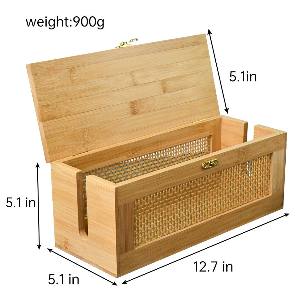 ชื่อ:กล่องจัดการสายไฟโต๊ะทำงานไม้ไผ่พร้อมฝาปิด