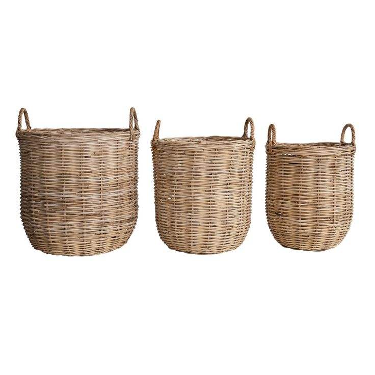 ชุดตะกร้าสานทรงกลมจากเส้นใยธรรมชาติทันสมัย เช่น หวายและปอกระเจา สำหรับจัดเก็บของใช้ในห้องนั่งเล่นและห้องนอน
