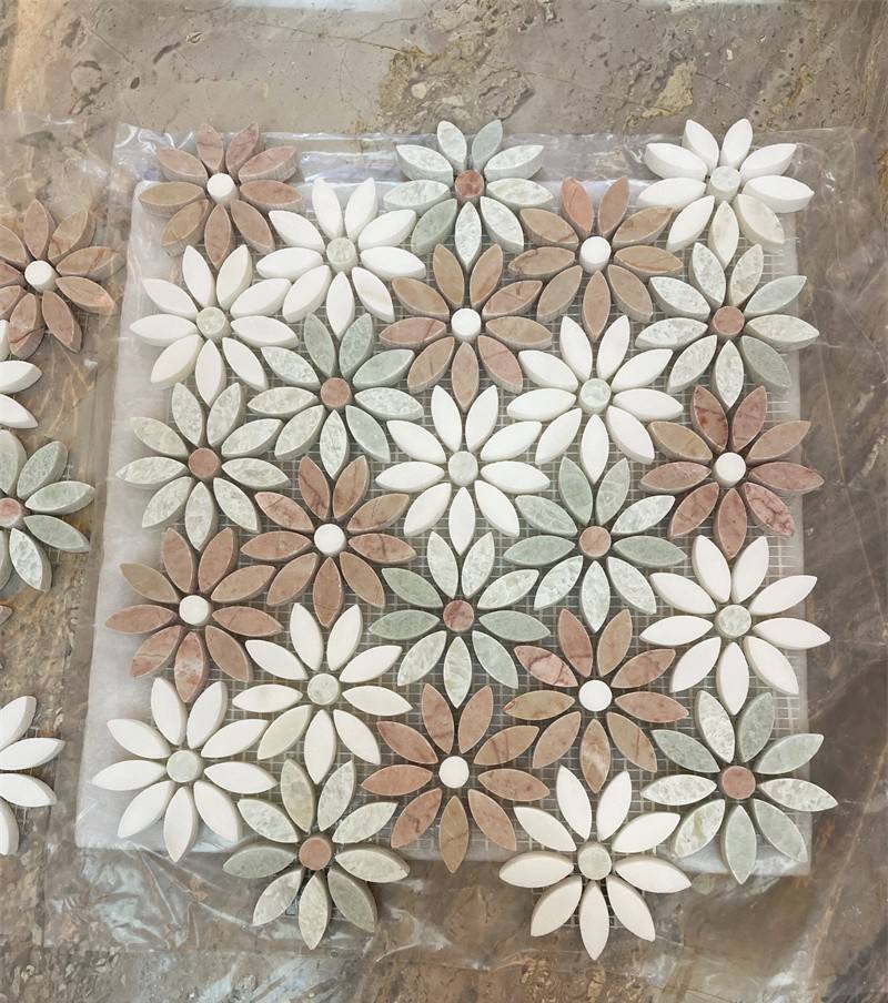 กระเบื้องโมเสคหินอ่อนธรรมชาติลายดอกไม้แบบฉีดน้ำ สำหรับตกแต่งผนังห้องนอน ระเบียง ห้องน้ำ ภายในอาคาร