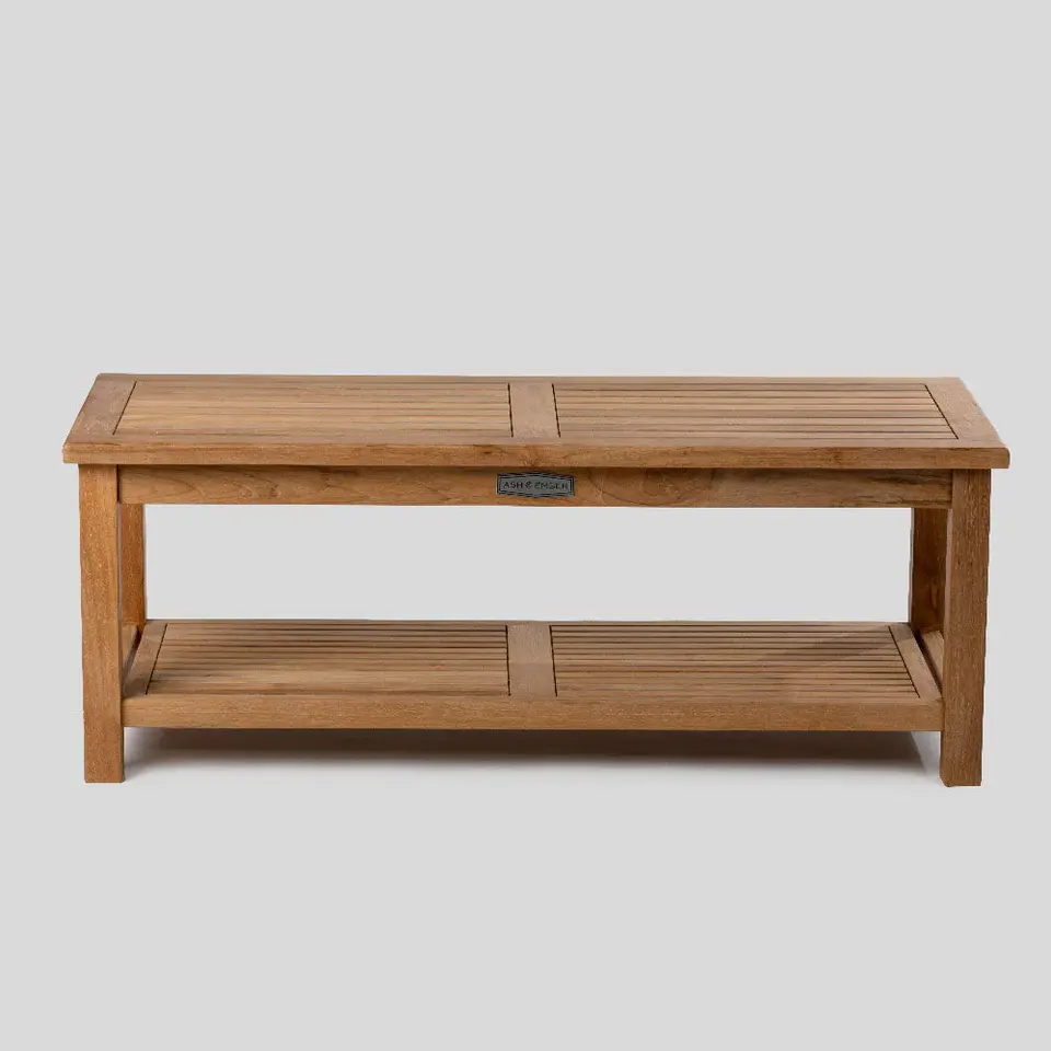 โต๊ะกาแฟกลางแจ้งทรงสี่เหลี่ยมผืนผ้าไม้สักแท้ทันสมัย ทนทานและน้ำหนักเบา เหมาะสำหรับใช้ในระเบียงและเฉลียง
