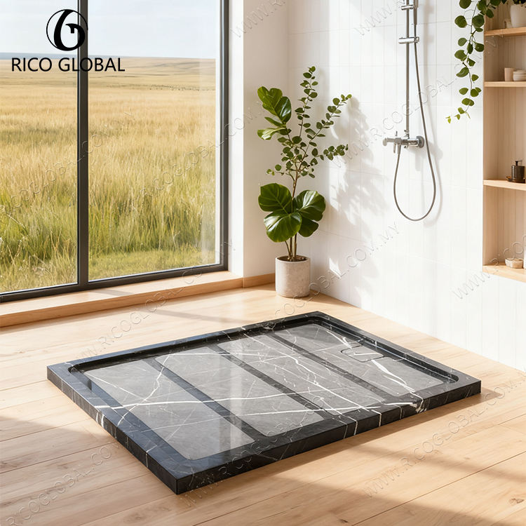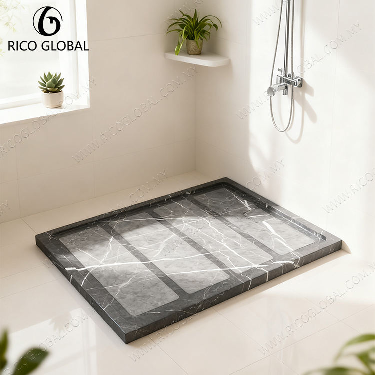 ถาดอาบน้ำสี่เหลี่ยมหินธรรมชาติแบบทันสมัยอะคริลิคกันลื่นสำหรับห้องน้ำหรือโรงแรม