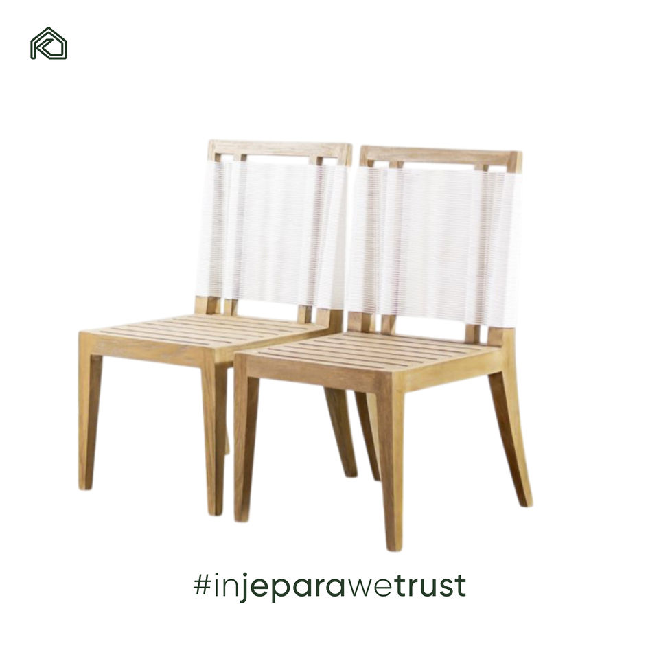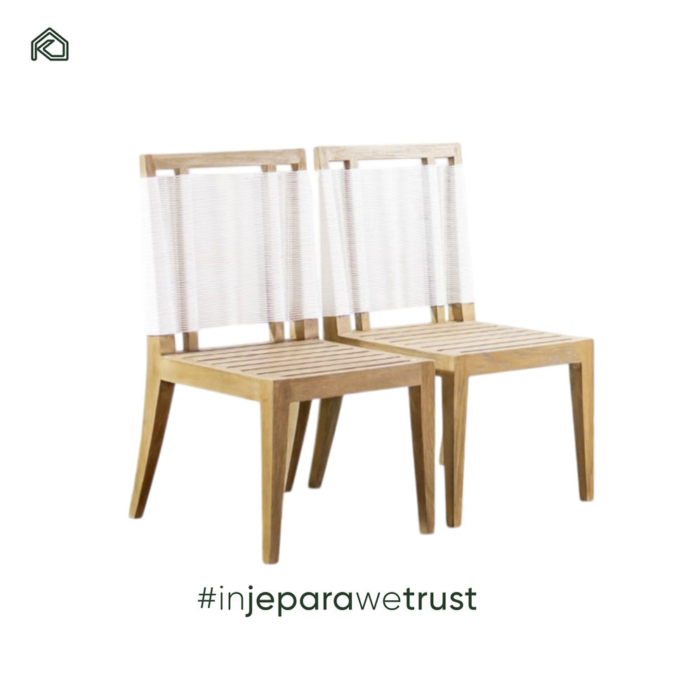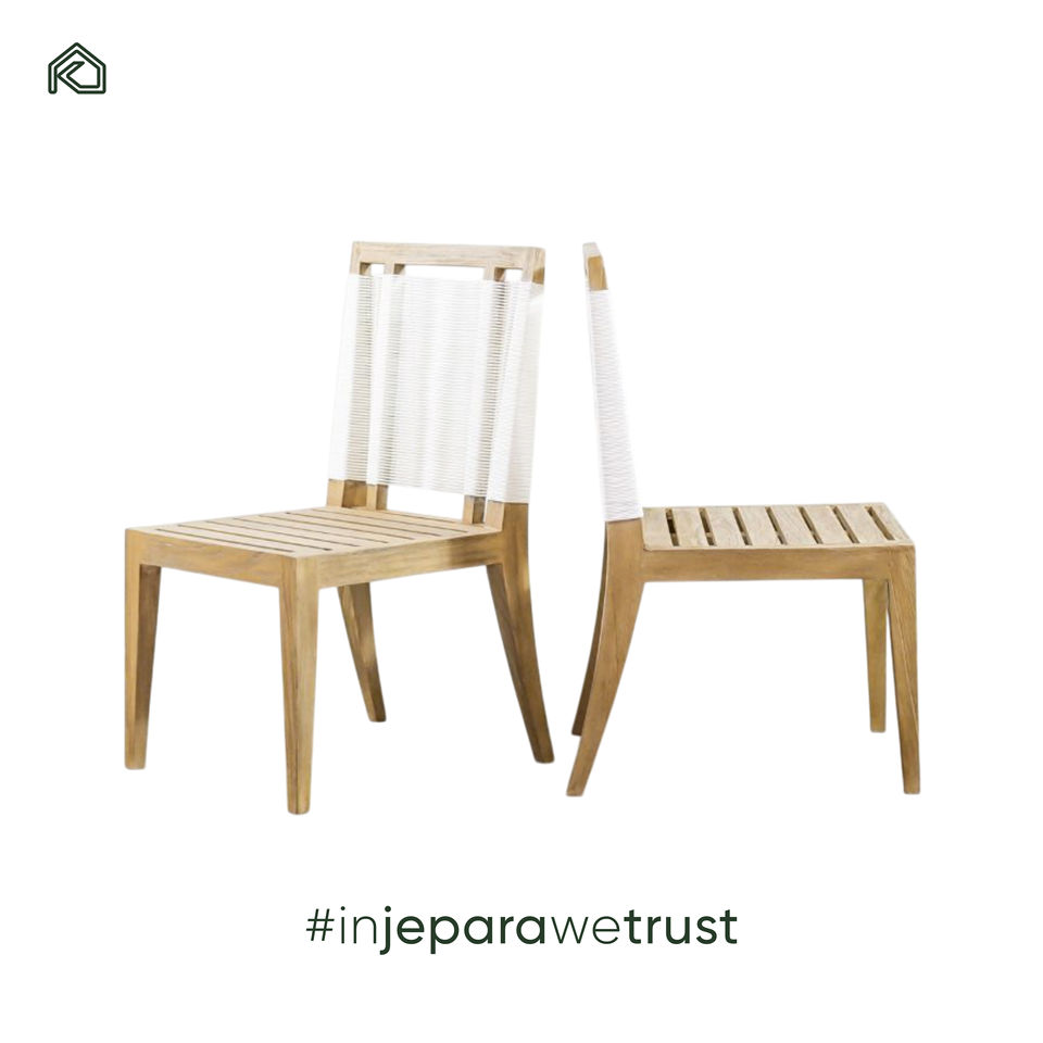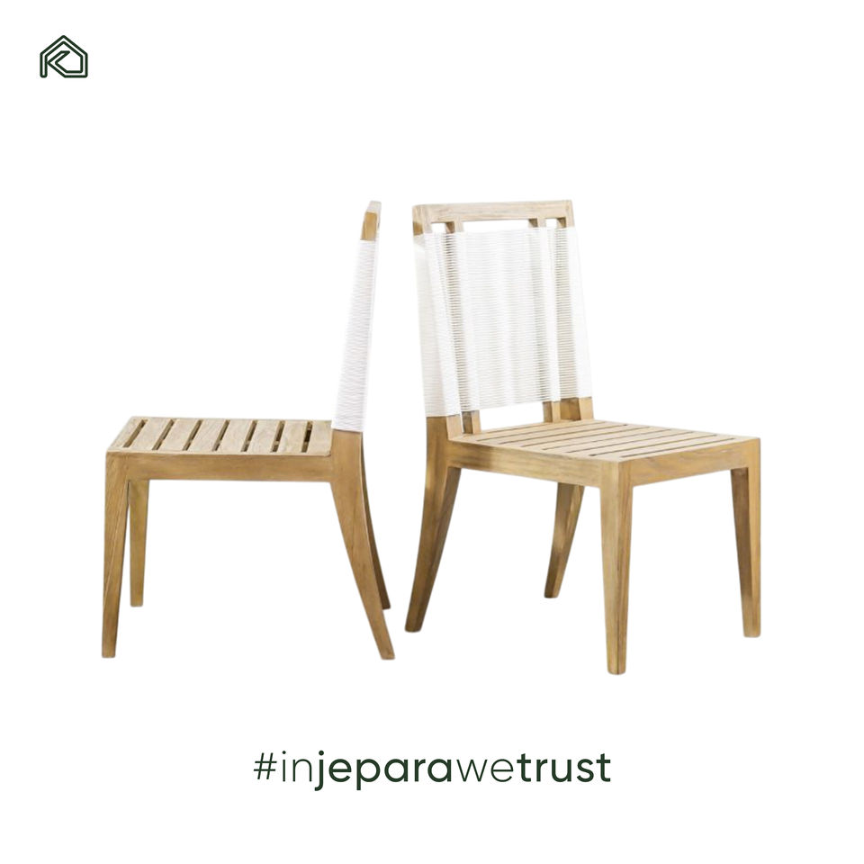 เก้าอี้รับประทานอาหารกลางแจ้งไม้สักธรรมชาติทันสมัย พร้อมเชือกและเบาะรองนั่ง สำหรับใช้ในโรงแรม วิลล่า ห้องนั่งเล่น ผลิตในอินโดนีเซีย
