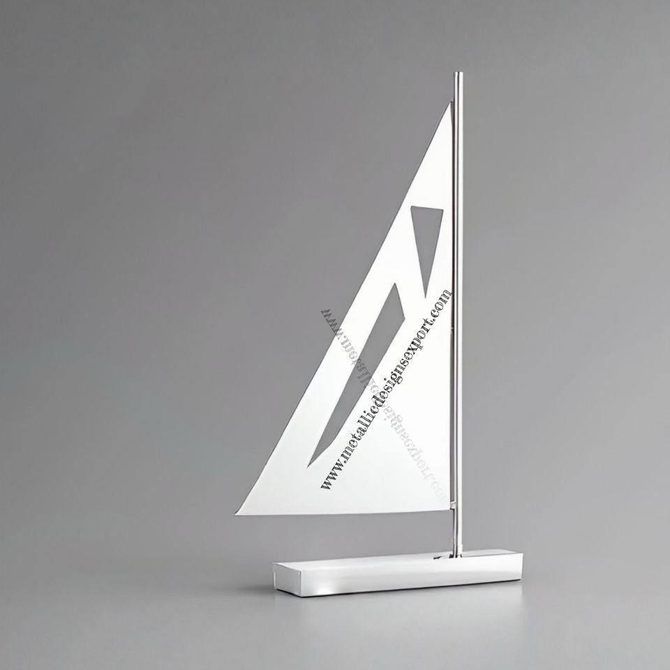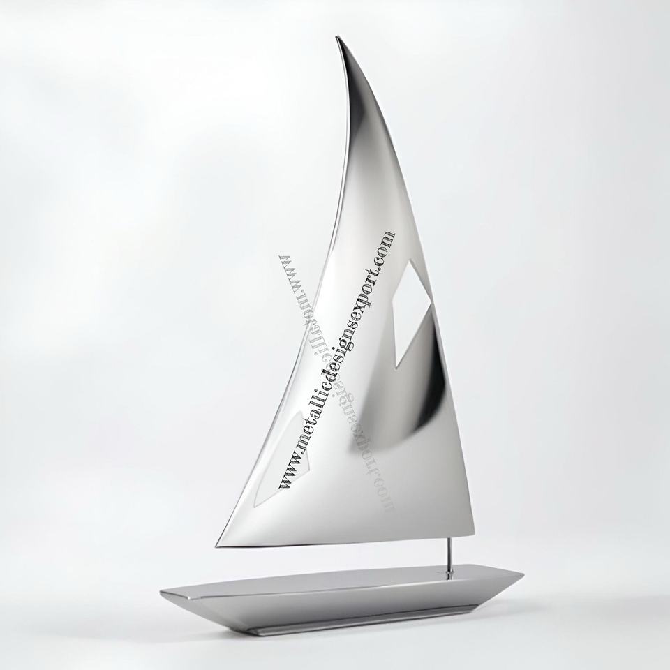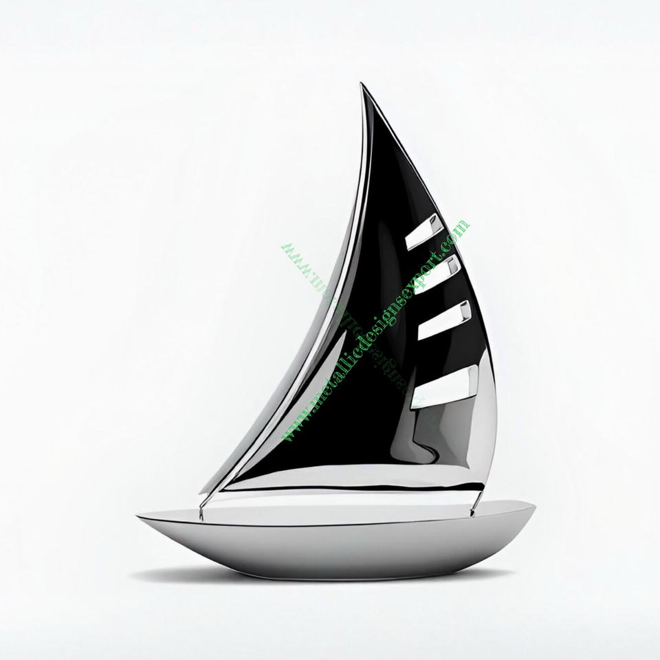 รูปปั้นเรือใบสแตนเลสขัดเงาทันสมัยลายทะเลทำจากเงินสีดำตกแต่งบ้านสำนักงานขายส่งเคลื่อนย้ายได้อลูมิเนียม