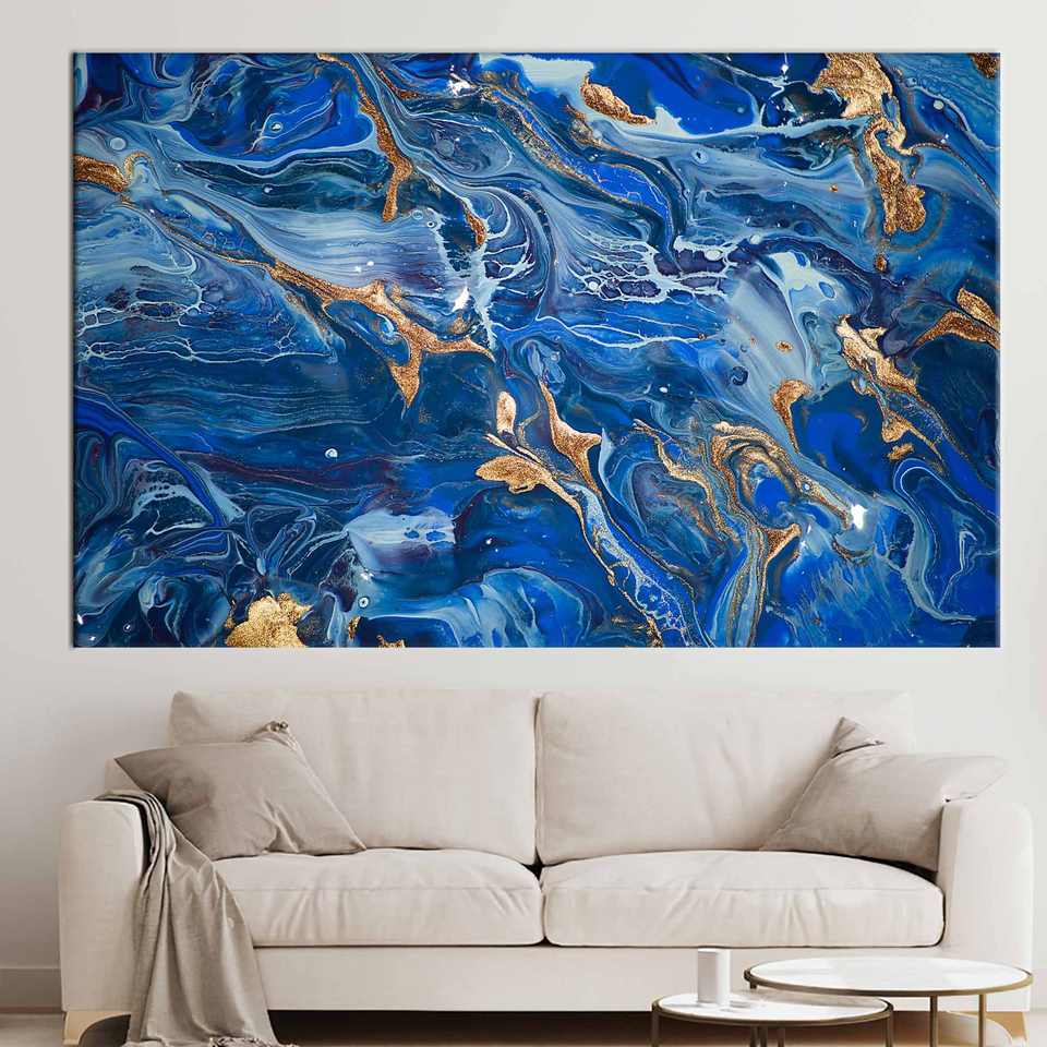 ศิลปะบนผืนผ้าใบสีน้ำเงินกรมท่าแบบทันสมัย: ของตกแต่งผนังแบบนามธรรมสุดหรู,1P:ห่อหุ้มอย่างดี
