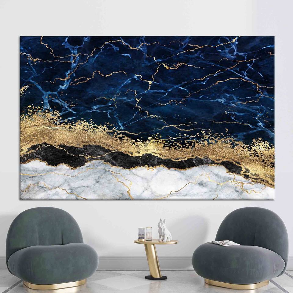ภาพพิมพ์บนผ้าใบลายกองทัพเรือและสีทองสมัยใหม่ - ของตกแต่งบ้านสุดหรู, ผ้าใบหุ้ม