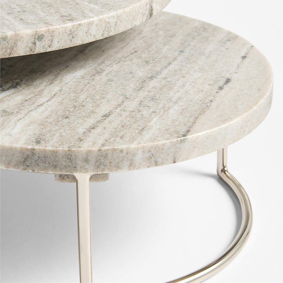 ชั้นวางเค้กแบบซ้อนทันสมัยพร้อมฐานหินอ่อนและโครงโลหะสีเงิน ชั้นวางโชว์อาหารบุฟเฟ่ต์สุดหรูสำหรับโรงแรม งานจัดเลี้ยง และงานอีเว้นท์