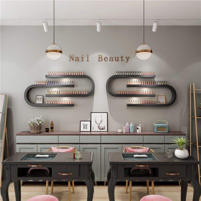 ชั้นวางยาทาเล็บติดผนังสีดำขาวสไตล์มินิมอลทันสมัย