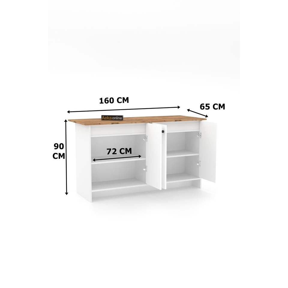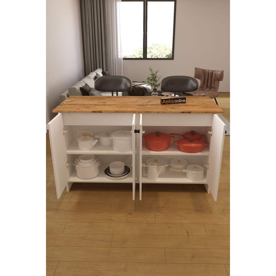 ไอส์แลนด์ครัวไม้สนขาวสไตล์นอร์ดิกสมัยใหม่ ขนาด 160 ซม. รุ่น AE-2080 ตู้เก็บของ Ayder โต๊ะบาร์ รถเข็นครัวไม้ ผลิตในตุรกี จาก AekaOnline