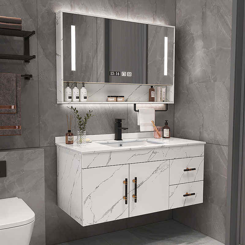 Modern Nordic Bathroom Solid Wood Mirror Cabinet Bathroom Furniture With Smart Mirror Vanity