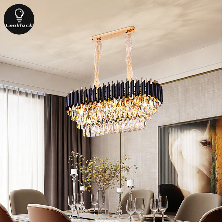 โคมไฟระย้าคริสตัลสีดำทรงรีขนาดใหญ่ สไตล์นอร์ดิกสมัยใหม่ สำหรับเพดานสูง เหมาะสำหรับโรงแรม บันได งานแต่งงาน และงานเลี้ยง