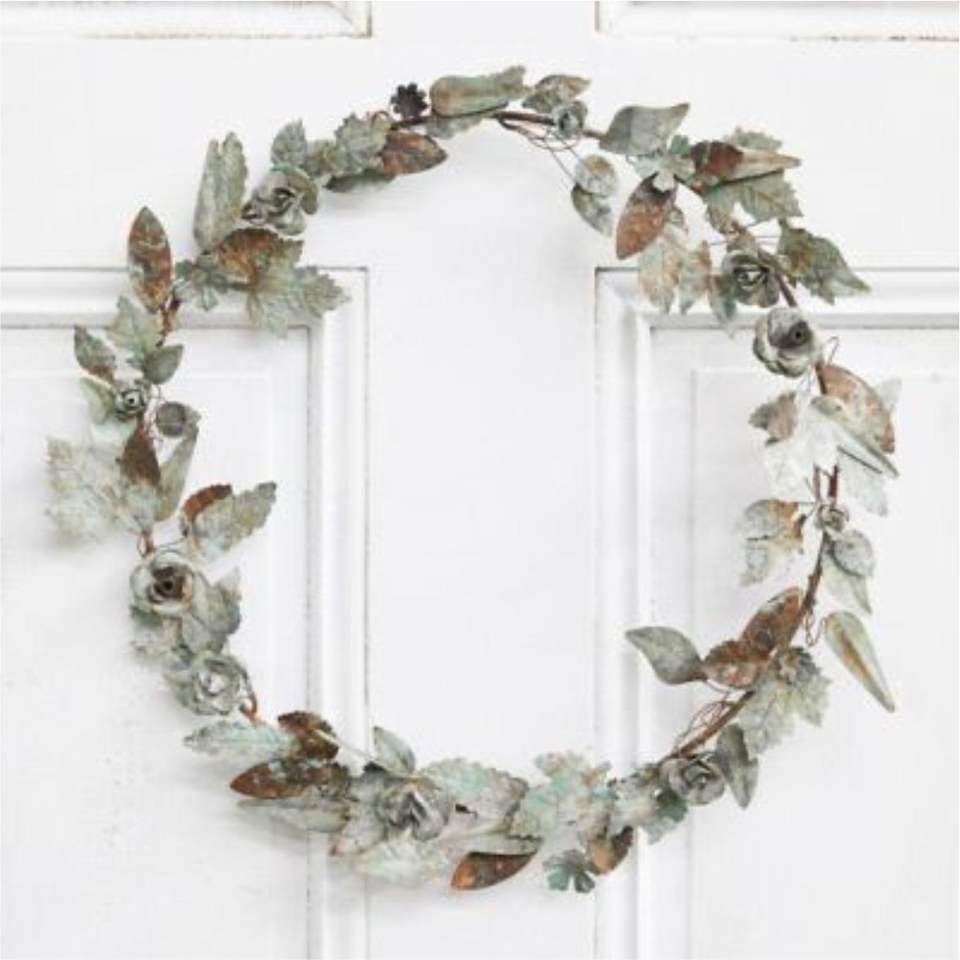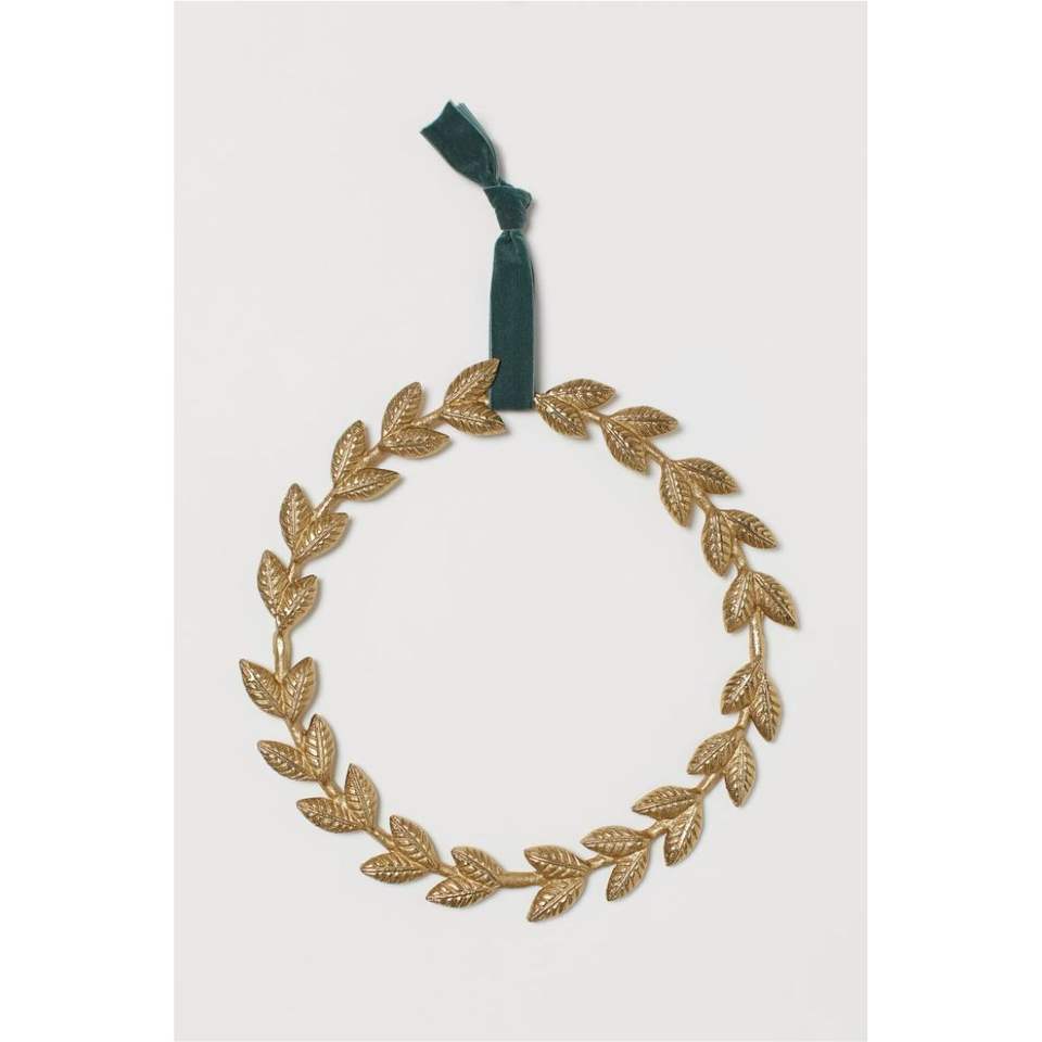 Modern Nordic Gold Leaf Metal Wreath Elegant Wall Hanging Ornament withVelvet Strap Premium Home Wedding Decorative Metal Wreath