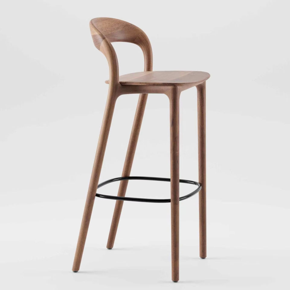 เก้าอี้บาร์สไตล์นอร์ดิกสมัยใหม่สำหรับโรงแรม พร้อมเบาะผ้าพิมพ์โลโก้ตามสั่ง โครงไม้เนื้อแข็ง พนักพิงสูง ดีไซน์สแกนดิเนเวียน สไตล์ปาร์ค ญี่ปุ่น