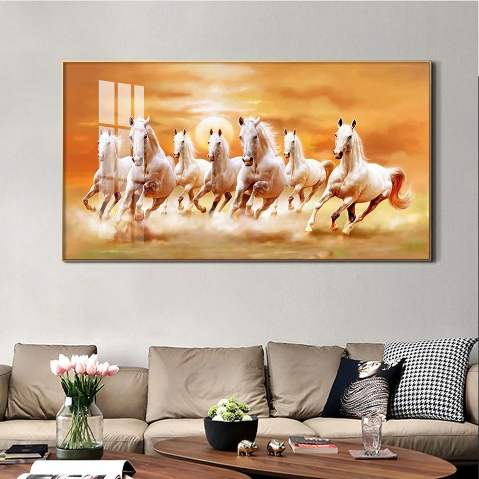 นอร์ดิกที่ทันสมัยหรูหรา7ภาพม้าขาวกำลังวิ่งอยู่วิวพระอาทิตย์ตกตกตกตกตกกรอบคริสตัลพอร์ซเลนภาพตกแต่งบ้านศิลปะภาพวาดม้าติดผนัง