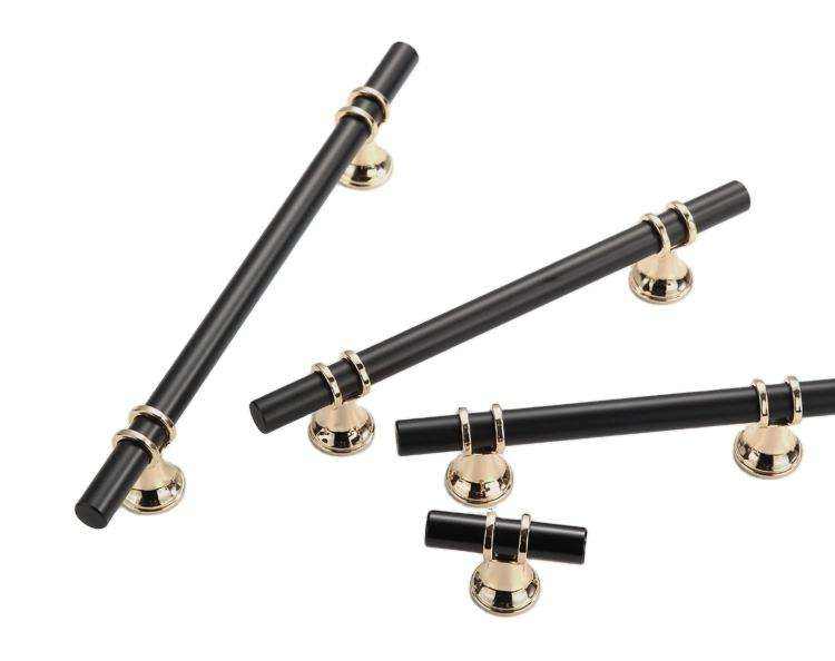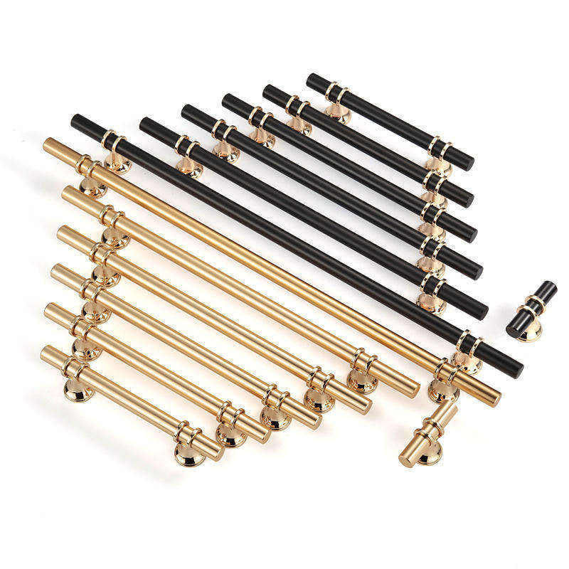มือจับตู้ยาวสไตล์นอร์ดิกหรูหราทันสมัย สีดำทอง ผลิตจากโลหะผสมสังกะสี ทนทาน ป้องกันสนิม สำหรับลิ้นชัก ตู้เสื้อผ้า ตู้ครัว