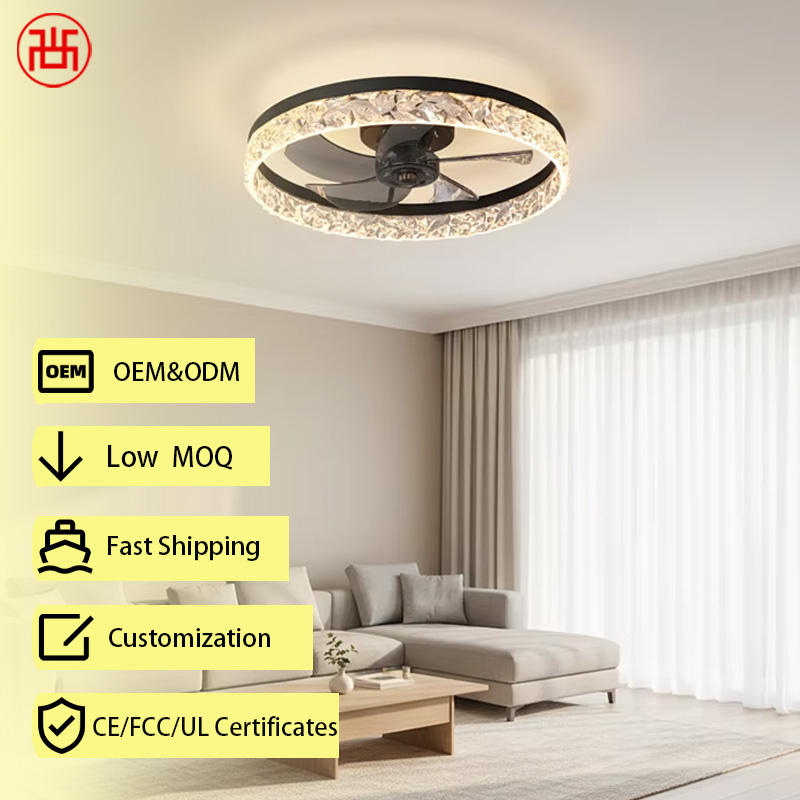 Modern Nordic Style 8225-500 Metal Flush Mount Electric LED Ceiling Fan Light 6-Speed Reversible Airflow Silent Remote Control