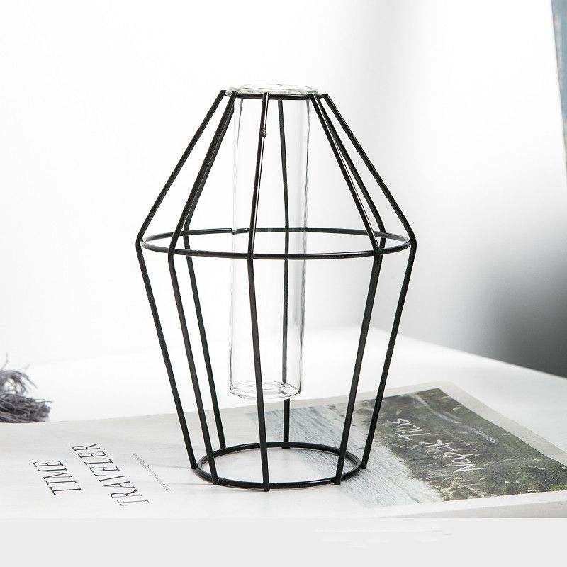 แจกันดอกไม้เหล็กน้ำหนักเบาสไตล์นอร์ดิกที่ทันสมัยกรอบทดสอบหลอดแก้วกุหลาบดำงานแต่งงานตกแต่งโต๊ะไฟหรูหรา