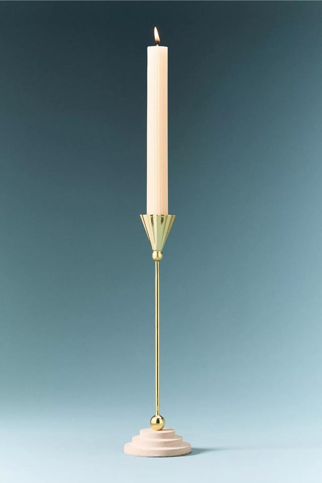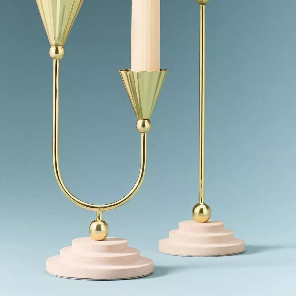 ชุดเชิงเทียนทรงเรียวสไตล์นอร์ดิกสมัยใหม่ เชิงเทียนโลหะทรงเรขาคณิตแบบมินิมอลพร้อมฐานหินอ่อน สำหรับตกแต่งโต๊ะงานอีเว้นท์ในพื้นที่อ่าวอาหรับ