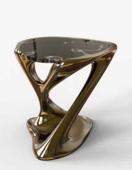 โต๊ะข้างสูงแบบนอร์ดิกทันสมัยมีเอกลักษณ์เฉพาะดีไซน์แฟนซีเฟอร์นิเจอร์บ้านหินอ่อนฐานโลหะทอง