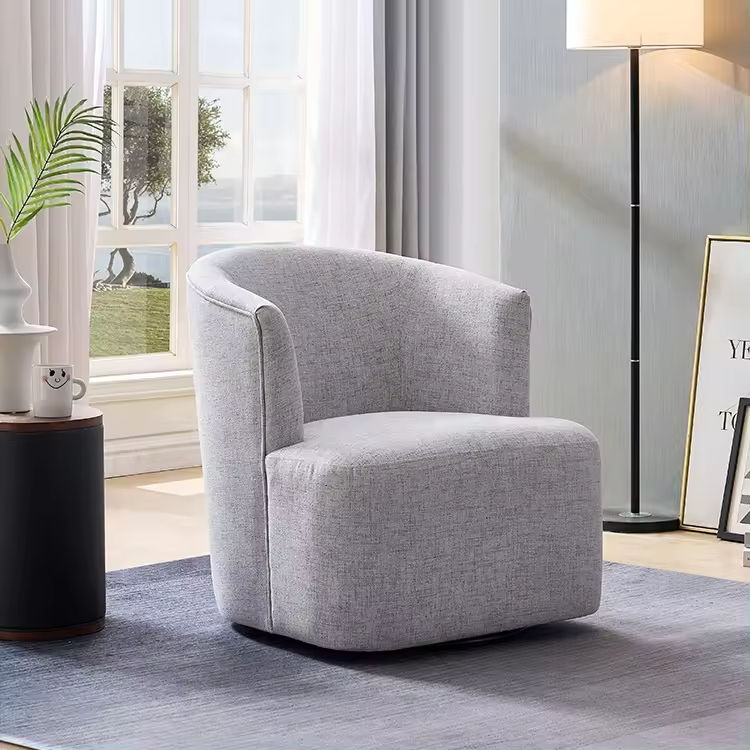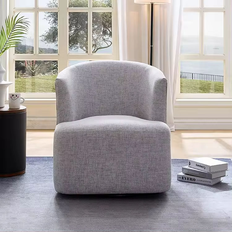 Modern Nordic Upholstered Swivel Accent Chair Fabric Single Sofa Leisure Armchair for Living Room Furniture
