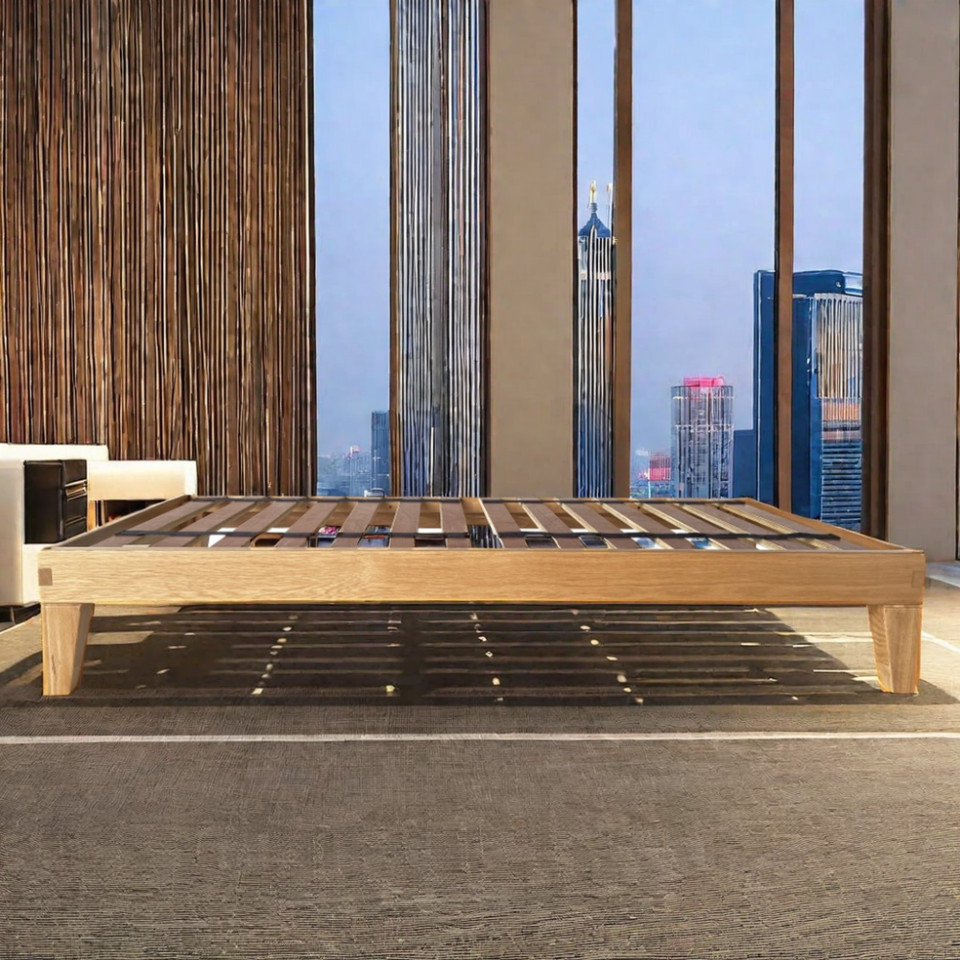 กรอบเตียงไม้ไม้โอ๊คขนาดควีนไซส์ทันสมัยหรูหราคลาสสิกเรียบง่ายพร้อมสไตล์ไม้เนื้อแข็งและที่เก็บของสำหรับใช้ในบ้าน