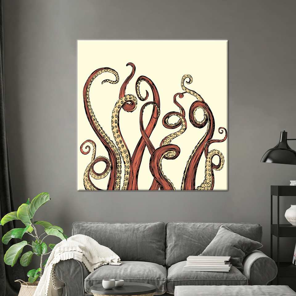 ภาพพิมพ์บนผ้าใบลายปลาหมึกยักษ์สมัยใหม่: ของตกแต่งบ้านแบบนามธรรม ห่อหุ้มอย่างดี