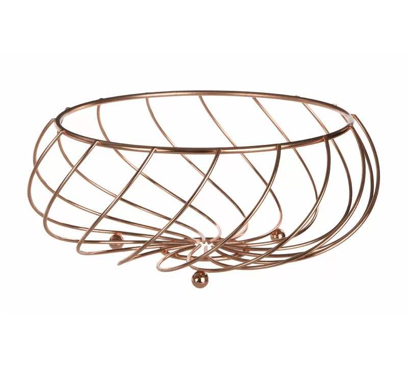 ตะกร้าผลไม้โลหะดีไซน์ทันสมัยสำหรับตกแต่งบ้านสไตล์ร่วมสมัย ด้วยรูปลักษณ์เรียบหรูและโครงสร้างที่สมดุล