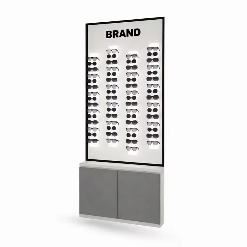 ตู้โชว์แว่นตาติดผนังแบบออปติคอลทันสมัย พร้อมไฟ LED สำหรับร้านค้าปลีก โชว์รูม ตู้เก็บของ สามารถกำหนดสีได้