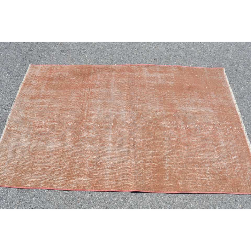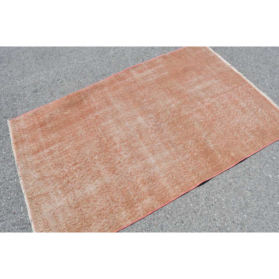 พรมลายสี่เหลี่ยมสีส้มทันสมัยผ้าขนสัตว์โพลีเอสเตอร์วิสคอสขนาด3.7x5.8ฟุตงานเย็บปะสไตล์ตุรกีมีแผ่นยางรองสำหรับโถงทางเดินที่อาศัยอยู่