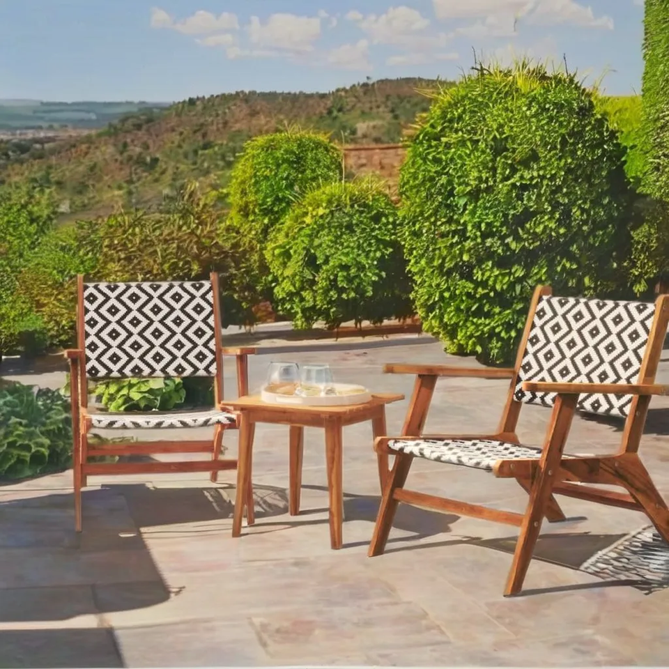 ชุดโต๊ะกาแฟเก้าอี้ไม้อะคาเซียกลางแจ้งที่ทันสมัยทนทานกันน้ำกันรังสียูวีเฟอร์นิเจอร์รับประทานอาหารสำหรับห้องนั่งเล่น