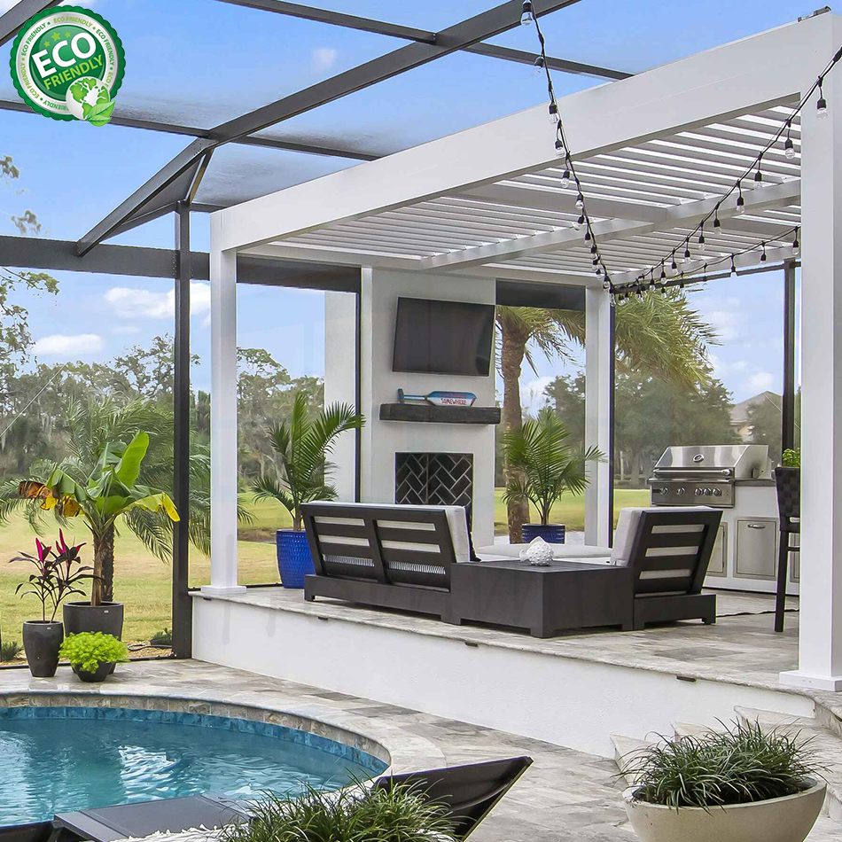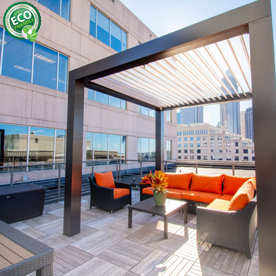 ซุ้มบานเกล็ดอลูมิเนียมกลางแจ้งแบบทันสมัยพร้อมไฟ RGB สนามหลังบ้าน