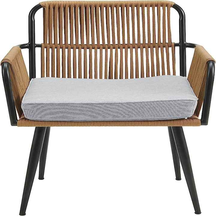 เก้าอี้รับประทานอาหารหวาย PE ทันสมัย สำหรับใช้กลางแจ้ง โครงอลูมิเนียม ผ้ากันน้ำ พร้อมเบาะรองนั่ง สำหรับใช้ในร้านอาหาร โรงเรียน และลานภายในตึก