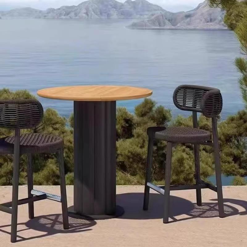 ชุดโต๊ะและเก้าอี้หวายกลางแจ้งทันสมัย 4 ที่นั่ง เฟอร์นิเจอร์กันน้ำสำหรับสวน ใช้ได้ทั้งระเบียงหรือลานบ้าน