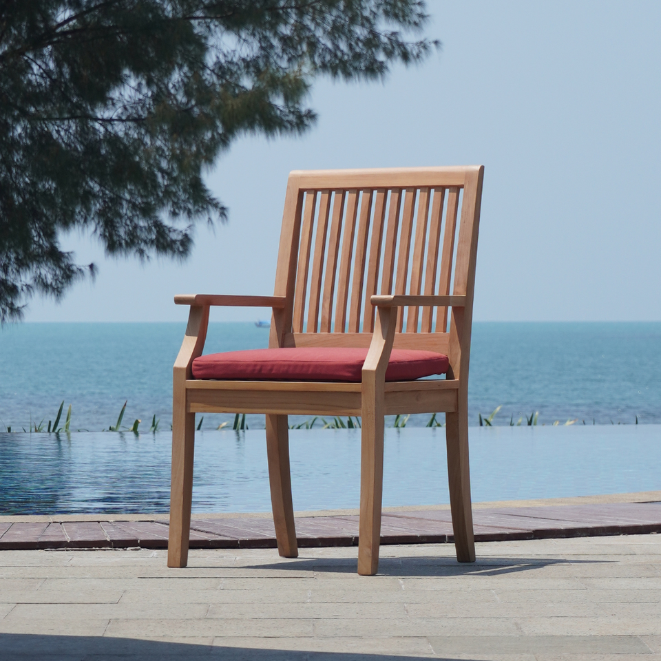 เก้าอี้รับประทานอาหารไม้สักแท้สำหรับใช้งานกลางแจ้ง ดีไซน์แบบซ้อนได้ สีธรรมชาติ เหมาะสำหรับบ้านและโรงแรม