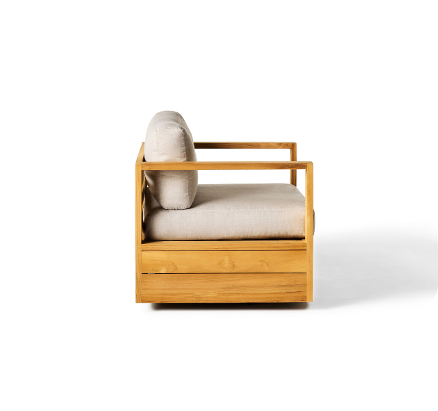 โซฟาไม้สักแท้สำหรับกลางแจ้ง ดีไซน์ทันสมัย เก้าอี้พักผ่อนเดี่ยวสุดหรู สำหรับระเบียงหรือสวน เป็นมิตรกับสิ่งแวดล้อม เหมาะสำหรับห้องนั่งเล่น อพาร์ทเมนต์ และพื้นที่กลางแจ้ง