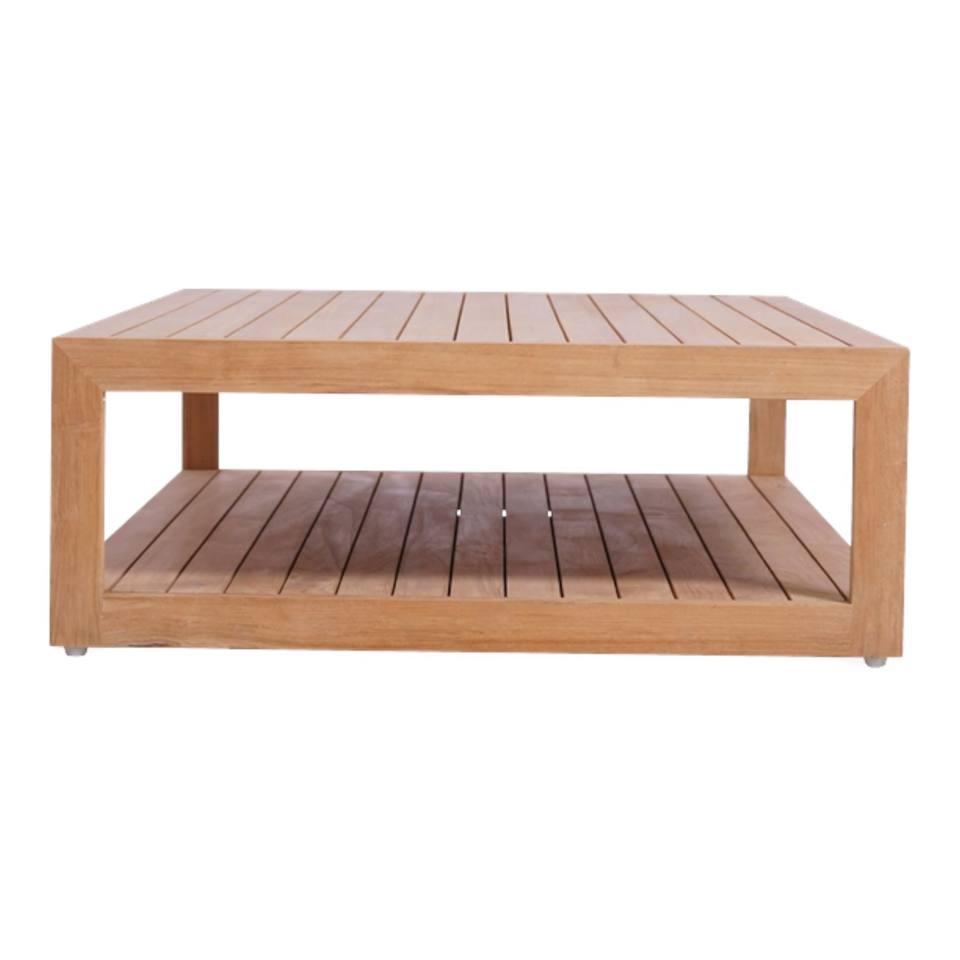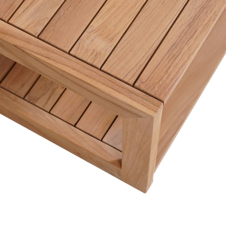 โต๊ะกาแฟไม้สักกลางแจ้งทรงสี่เหลี่ยมแบบโมเดิร์น สองชั้น ดีไซน์เรียบง่าย ทำจากไม้เนื้อแข็ง สำหรับห้องนั่งเล่นและสวน