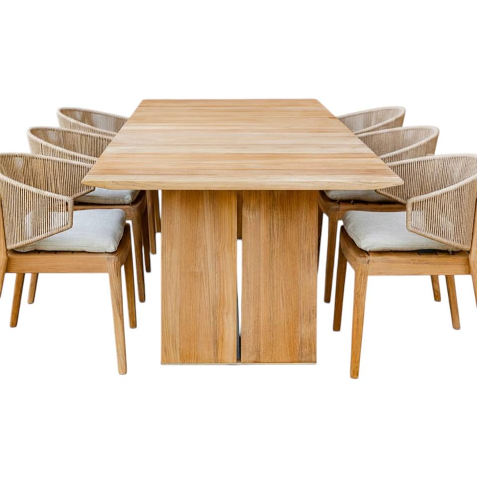 โต๊ะอาหารไม้สักกลางแจ้งทรงสี่เหลี่ยมผืนผ้าสไตล์โมเดิร์น