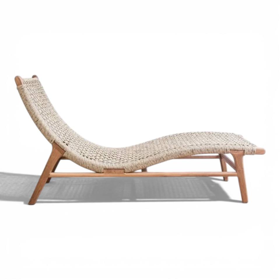 ชื่อสินค้า:เก้าอี้อาบแดดไม้สักกลางแจ้งทันสมัย หวายสาน