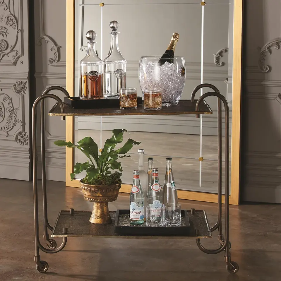 รถเข็นบาร์ทรงรีทันสมัย พร้อมชั้นวางทรงกลมสีทอง ทันสมัย ทนทาน เป็นมิตรกับสิ่งแวดล้อม เหมาะสำหรับใช้ในบ้าน ร้านอาหาร ปลอดภัยจาก Zahid
