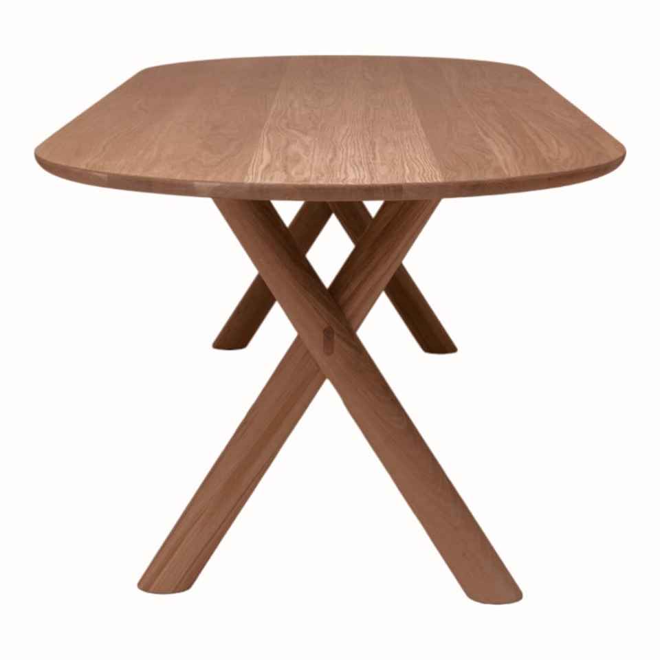 โต๊ะรับประทานอาหารไม้เนื้อแข็งทรงรีที่ทันสมัยพร้อมการออกแบบขาที่มีมุมที่ไม่ซ้ำกันเฟอร์นิเจอร์ร้านอาหารสำหรับโรงแรมภายนอกสวนกลางแจ้ง